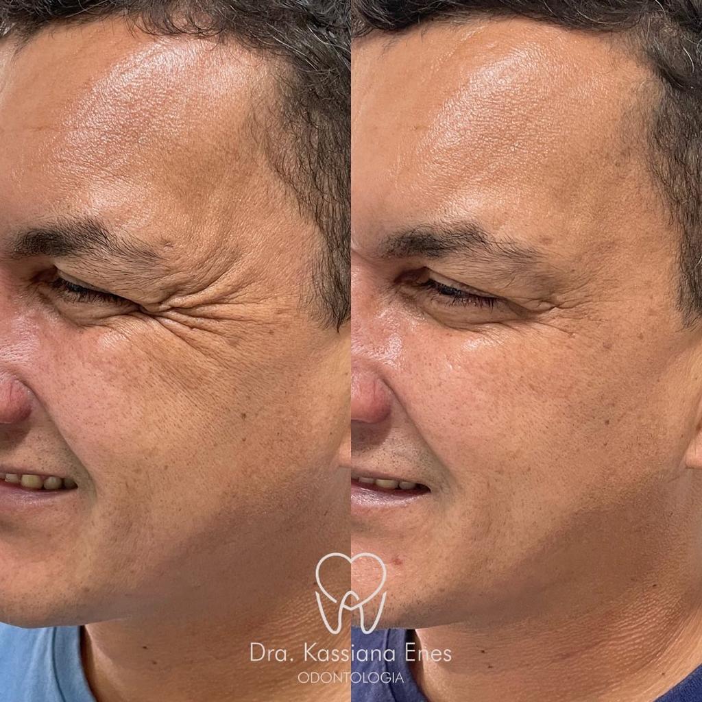 A toxina botulínica é aplicada no músculo responsável pela formação da ruga, causando um relaxamento temporário.